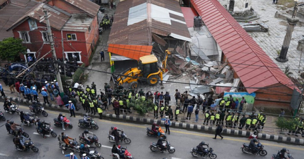 थापाथलीको ट्राफिक बिट भत्काउन पुग्यो महानगरको डोजर