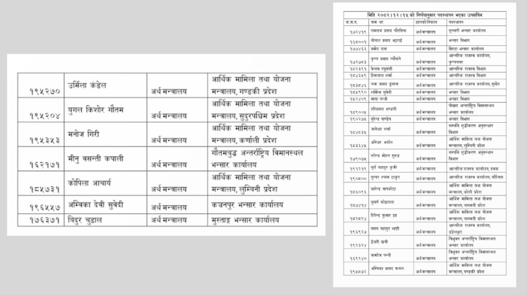अर्थ मन्त्रालयले एकसाथ गर्यो ३० उपसचिवको सरुवा