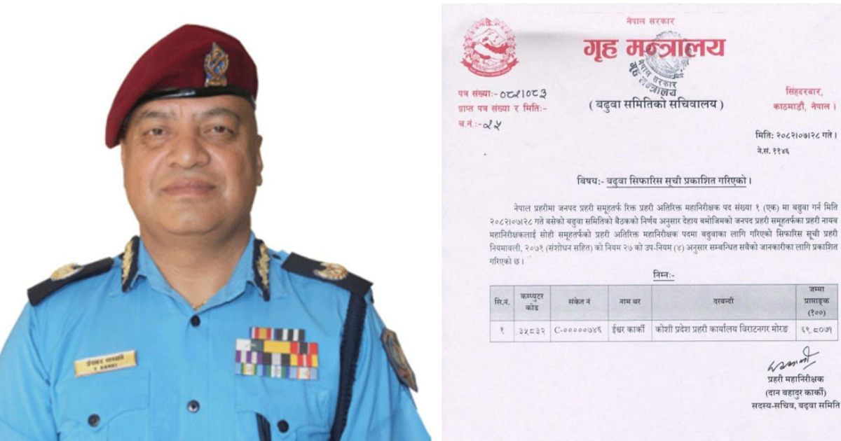 २९ कात्तिक, काठमाडौं । नेपाल प्रहरीको रिक्त अतिरिक्त महानिरीक्षक (एआईजी) मा बढुवा गर्न कोसी प्रदेशका…