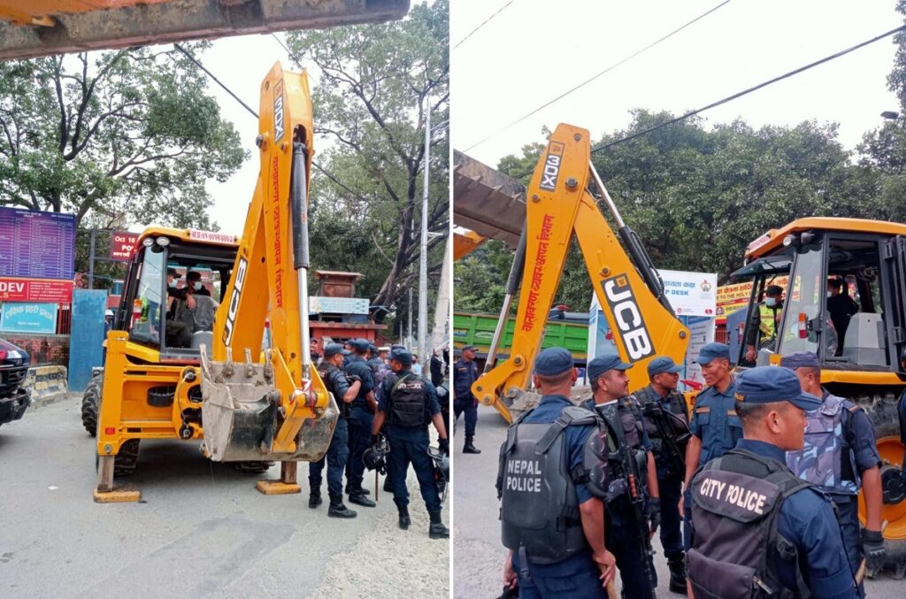 गौशाला क्षेत्रका अतिक्रमित संरचनामा डोजर चलाउन फेरि पुग्यो काठमाडौं महानगर