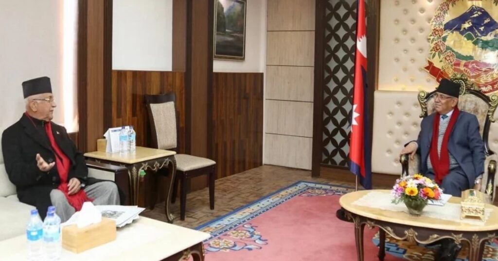 सिंहदरबारमा प्रचण्ड–ओली भेटवार्ता