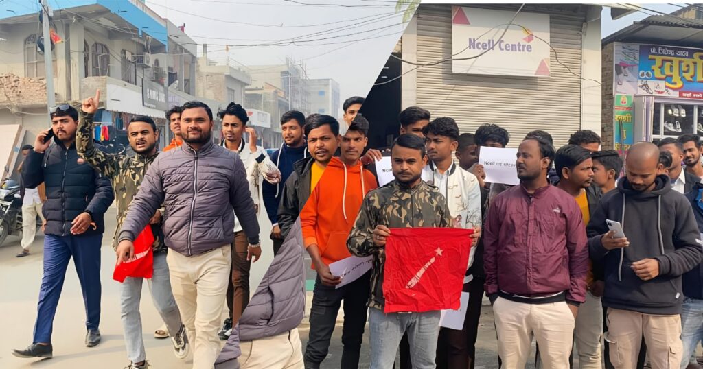 एनसेल खरिद-बिक्रीविरुद्ध अनेरास्ववियुको विरोध प्रदर्शन
