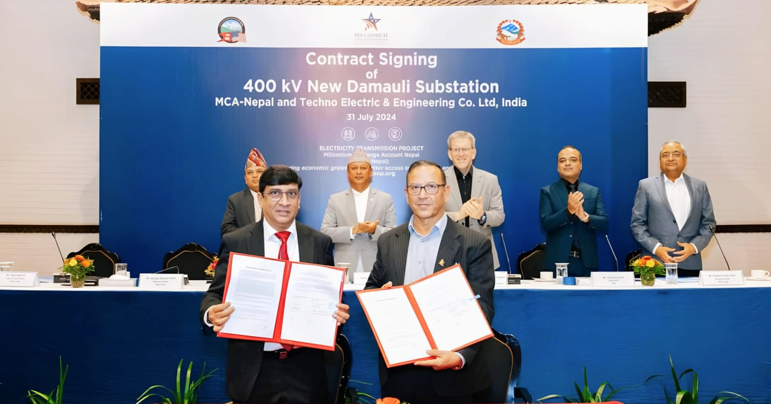 बुधबार आयोजित कार्यक्रममा एमसीए-नेपालका कार्यकारी निर्देशक खड्गबहादुर विष्ट र टेक्नो कम्पनीका व्यापार निर्देशक राजीव अग्रवालले सम्झौतापत्रमा हस्ताक्षर गरेका हुन् । निर्माण लागत ३ करोड ८८ लाख डलरमा तनहुँस्थित न्यू दमौली सबस्टेसन ठेक्का लागेको हो । मिलिनियम च्यालेन्ज कर्पोरेसन (एमसीसी) नेपाल कम्प्याक्ट अन्तर्गत निर्माण हुने ३ वटै सबस्टेसनको निर्माण सम्झौता भएको हो ।