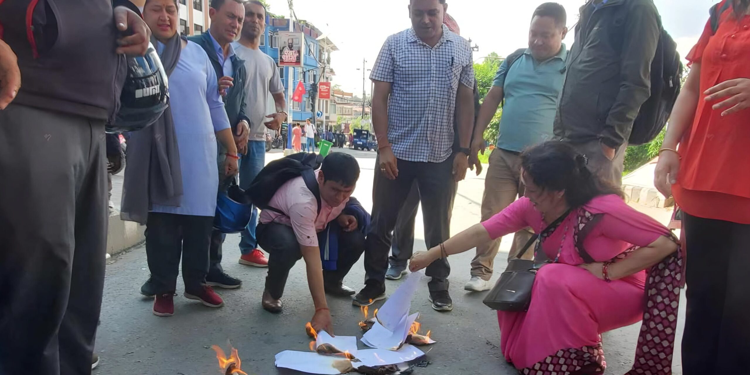 शिक्षकहरूले माइतीघरमा विद्यालय शिक्षा विधेयक जलाए