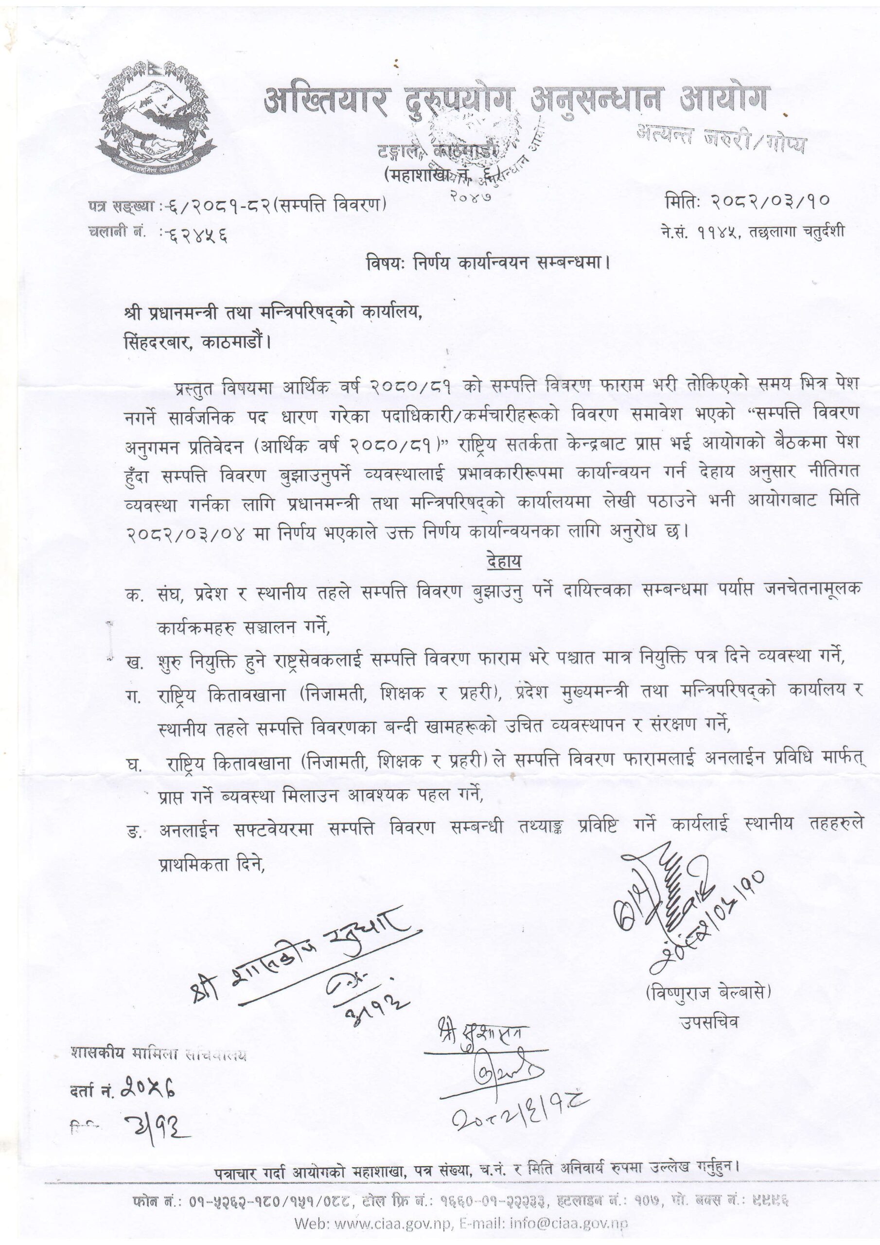 अब नियुक्ति लिनुअघि नै सम्पत्ति विवरण बुझाउनुपर्ने