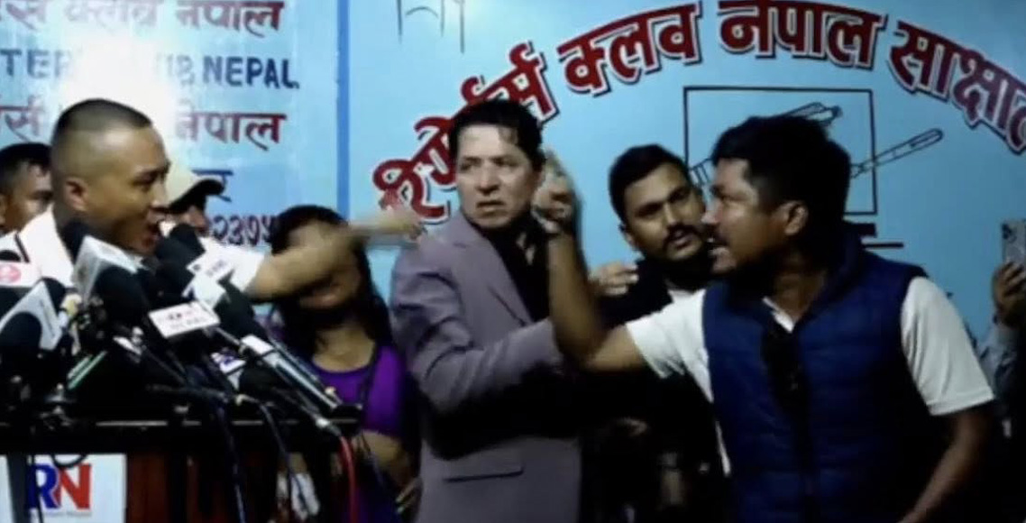 सुदन गुरुङमाथि पत्रकार सम्मेलनमै हातपात, पुग्यो प्रहरी