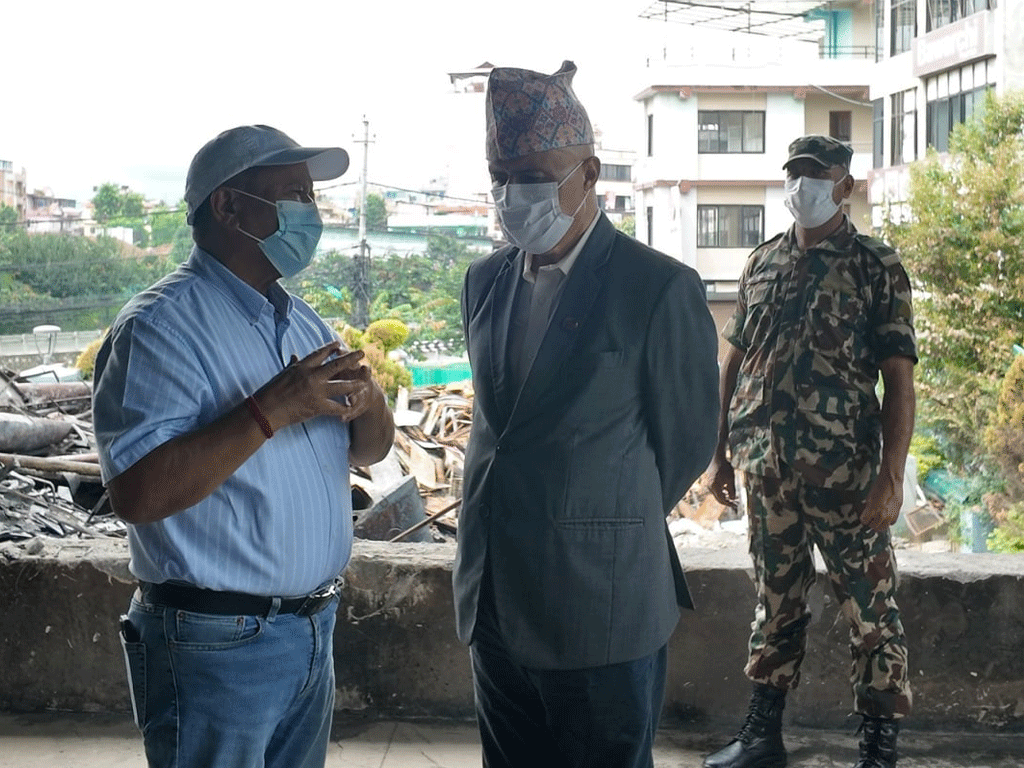 अर्थमन्त्री खनालद्वारा आगजनीले ध्वस्त भाटभटेनी निरीक्षण