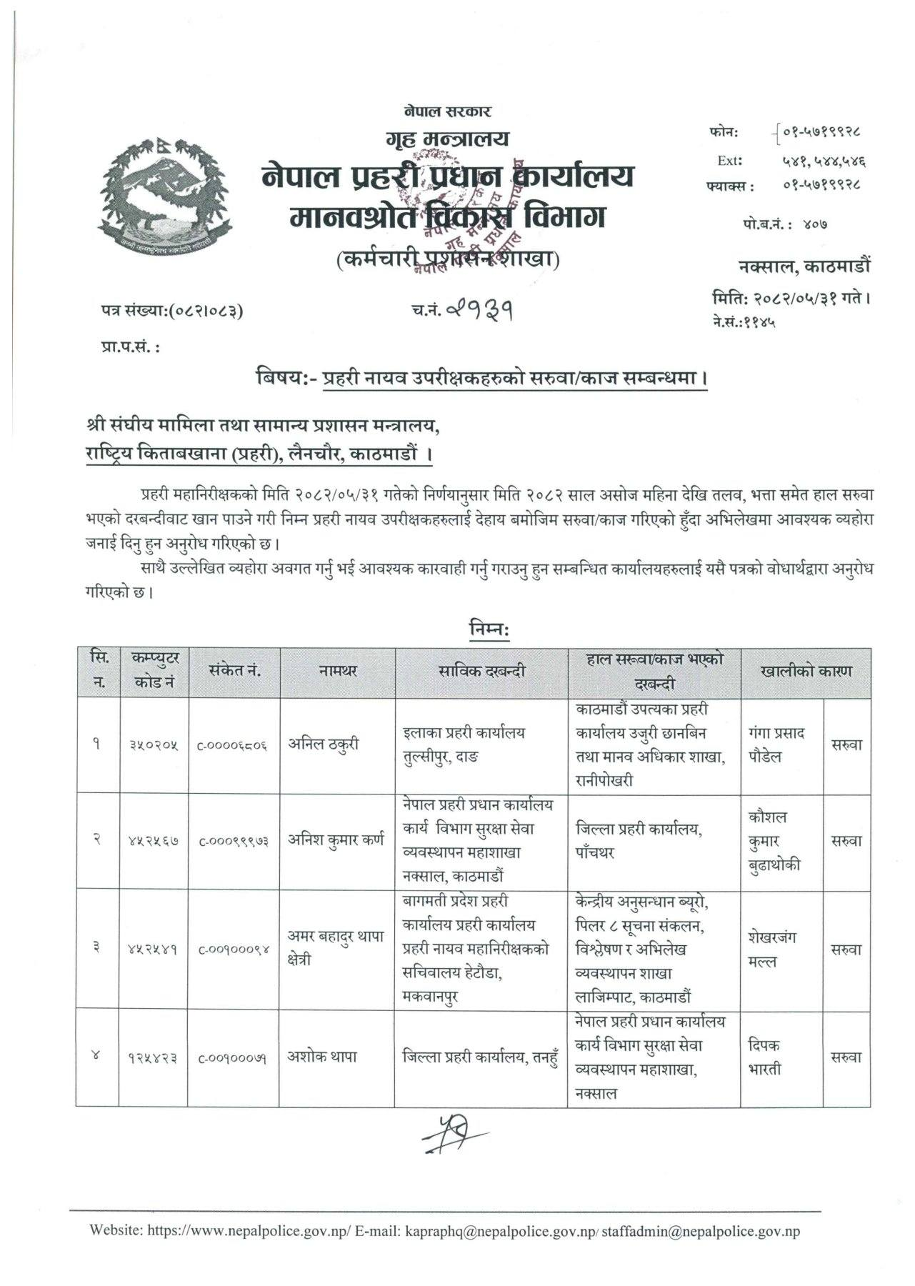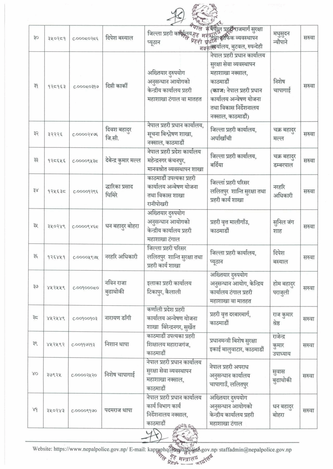 नेपाल प्रहरीका ९० जना डीएसपीको सरुवा
