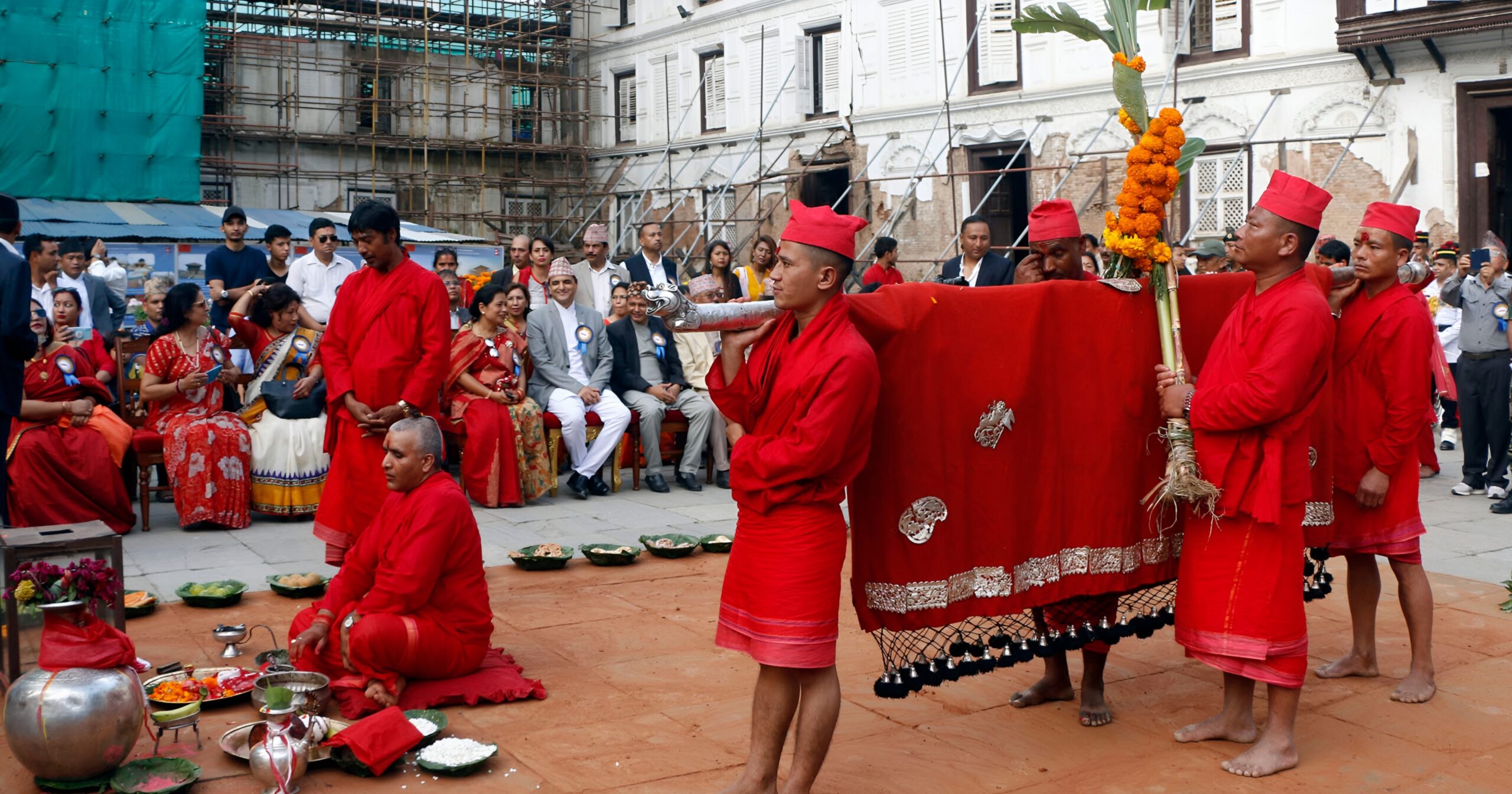 जमलबाट हनुमानढोकासम्म निजामती सेवाका उच्च पदस्थ अधिकारीहरु, गुर्जुका पल्टन, ब्याण्डबाजा, पञ्चेबाजा र सांस्कृतिक नाचगानसहितको लावालस्करका साथमा फूलपाती ल्याउने गरिन्छ ।