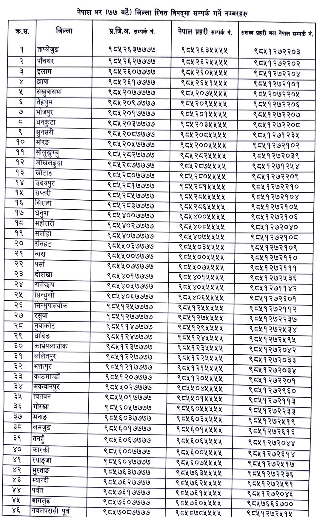 झरी र बाढीमा फसेकाले यी नम्बरमा गर्नुस् सम्पर्क (सूचीसहित)
