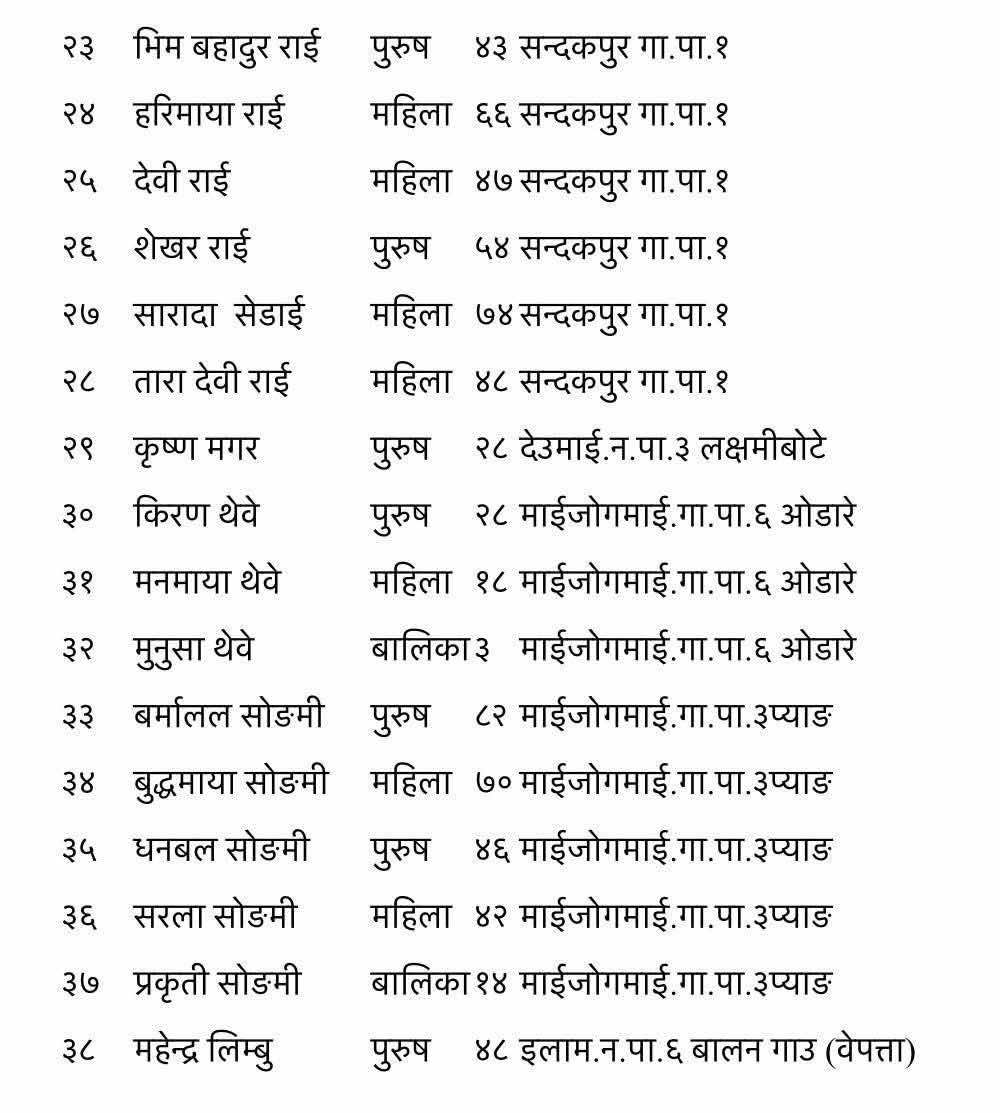 यी हुन् इलाममा पहिरोमा परि मृत्यु हुनेहरु (नामावलीसहित)