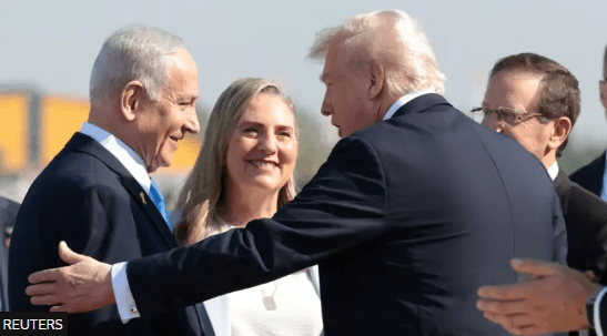 अमेरिकी राष्ट्रपति डोनाल्ड ट्रम्प इजरायल पुगेका छन् । प्यालेस्टिनी विद्रोही संगठन हमास र इजरायलबिच बन्दी साटासाट गर्ने सम्झौता कार्यन्वयन भएकै दिन ट्रम्प इजरायल पुगेका हुन् । अन्तराष्ट्रिय संचारमाध्यम सीएनएनका अनुसार ट्रम्पले इजरायी प्रधानमन्त्री बेन्जामिन नेतन्याहुसहित अन्य केही उच्च पदस्थ अधिकारीहरुलाइ भेटने कार्यक्रम रहेको छ । ट्रम्पले इजरायली संसदमा समेत सम्बोधन गर्ने कार्यक्रम रहेको छ ।