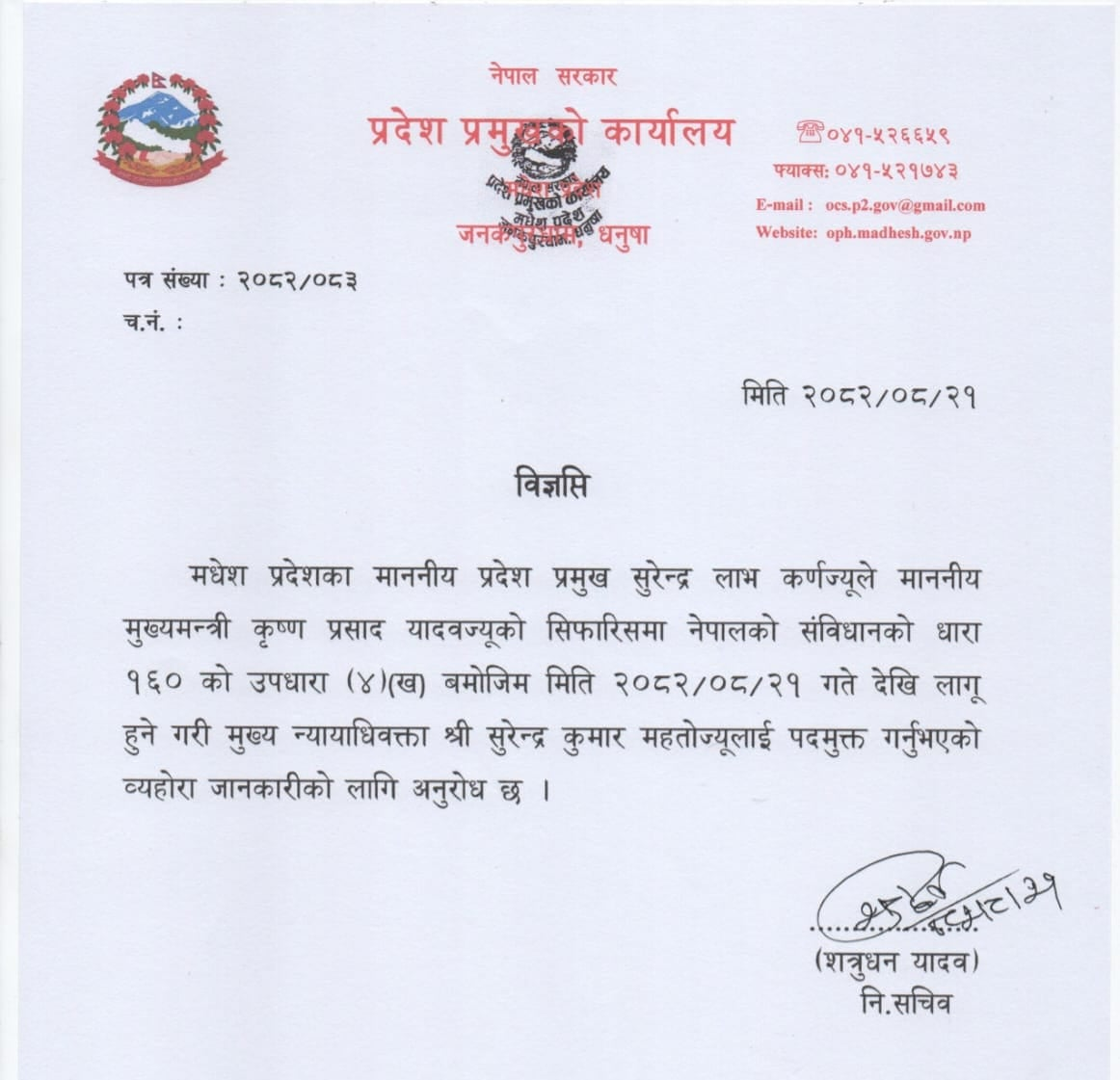 मधेशका मुख्य न्यायाधिवक्ता सुरेन्द्र कुमार महतो पदमुक्त