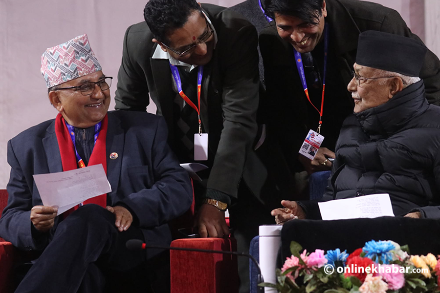 नेकपा एमालेको एघारौं महाधिवेशनमा नयाँ नेतृत्व चयनका लागि हुने मतदानअघि अध्यक्षका प्रत्यासीद्वय केपी शर्मा ओली र ईश्वर पोखरेल एकैसाथ देखिएका छन् । भृकुटीमण्डपस्थित महाधिवेशनको बन्दसत्र हलमा ओली र पोखरेलसहितका नेता सँगै देखिएका हुन् । मतदान सुरु हुनुअघि दुवै गम्भीर मुद्रामा देखिएका छन् । नयाँ केन्द्रीय कमिटी चयनका लागि ओली र पोखरेलले प्यानलै बनाएर उम्मेदवारी दर्ता गराएका छन् । ओली पक्षमा महासचिवमा शंकर पोखरेललाई अघि सारिएको छ भने पोखरेल पक्षले सुरेन्द्र पाण्डेलाई अघि सारेको छ । एमालेमा नयाँ नेतृत्व चयनका लागि हुन लागेको निर्वाचनमा ८० विद्युतीय मेसिनबाट मतदान गराउने तयारी छ ।