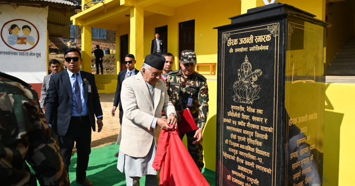 ‘हामीले ठूलो संघर्ष र बलिदानबाट प्राप्त गरेको संविधान र संघीय लोकतान्त्रिक गणतान्त्रिक शासन प्रणालीले शासनमा बसेकाहरूबाट जनताप्रतिको यहि दायित्वसहित दिगो शान्ति, सुशासन, विकास र समृद्धिको आकांक्षा पूरा गर्नुपर्ने दायित्वको अपेक्षा गरेको छ । यो हामीले बिर्सन हुन्न,’ उनले भने । राष्ट्रपति पौडेलले आजको बदलिँदो विश्वमा गुणस्तरीय, प्रविधिमैत्री र मूल्यमा आधारित शिक्षाको आवश्यकता बढ्दै गएको उल्लेख गर्दै विद्यालयहरूले ज्ञानसँगै नैतिकता, सीपसँगै संस्कार र शिक्षासँगै राष्ट्रप्रेम विकास गर्दै आगामी दिनमा पनि उत्कृष्ट शैक्षिक पहिचान कायम राख्न अझ उन्नत ढङ्गले युगानुकुल शैक्षिक क्रियाकलापका नविनतम आयामहरूलाई अघि बढाउन ध्यान दिनुपर्ने बताए ।