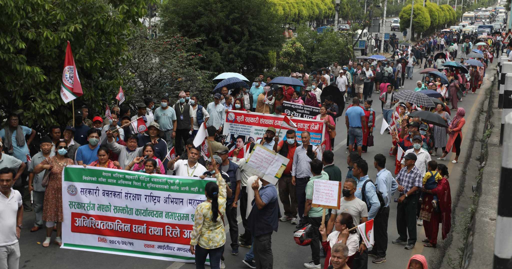यसअघि सरकारसँग भएका सम्झौता कार्यान्वयनको माग गर्दै उनीहरुले शुक्रबार प्रदर्शन गरेका हुन्। सरकारसँग पटक–पटक भएका सम्झौता कार्यान्वयन नभएको उनीहरुको गुनासो छ। सहकारी बचतकर्ता संरक्षण राष्ट्रिय अभियानको आयोजनामा आज प्रदर्शन गरिएको हो। माइतीघरबाट सुरु भएको विरोध र्याली बिजुलीबजार पुलसम्म पुगेर पुनः माइतीघर पुगेर सभामा परिणत भएको थियो। उनीहरुले रिले अनसनसमेत सुरु गरेका छन्।